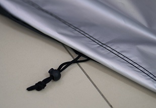 Летом в жаркую погоду мы советуем надевать чехол обратной строной, то есть серебристой подкладкой сверху. Но постоянно так делать не рекомендуется, чтобы не повредился гидроизоляционный скотч на швах.